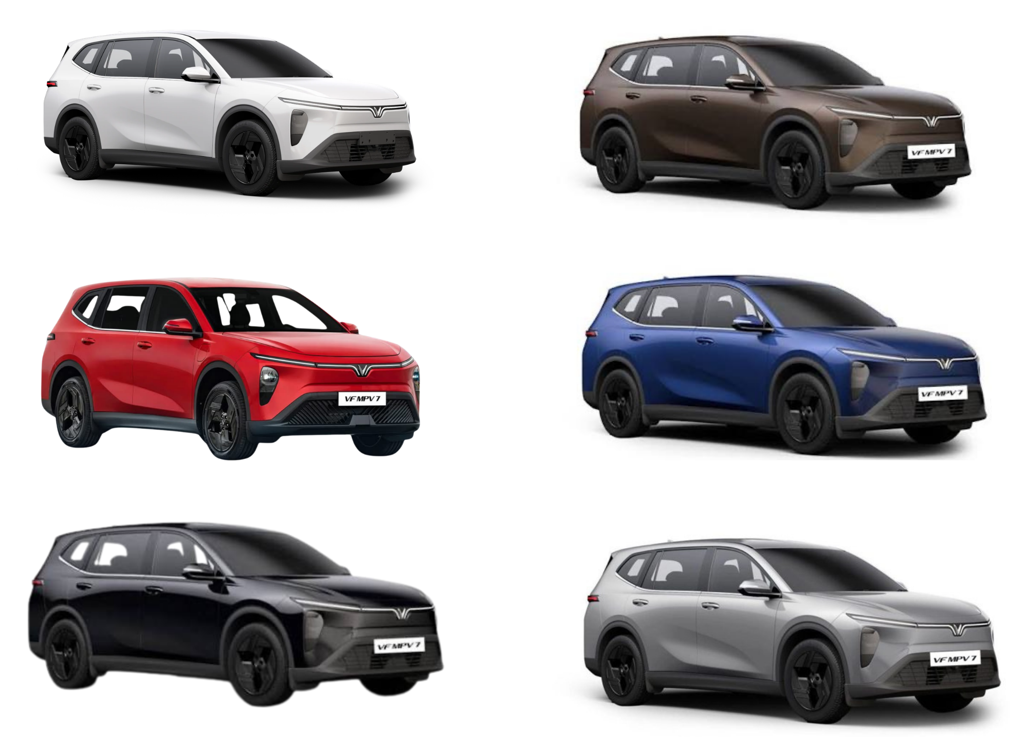 VF MPV 7 có 6 tùy chọn màu sắc ngoại thất: Xám (GREY) - Đỏ ( Red) - Đen (Jet Black) - Trắng (White) - XANH DƯƠNG (Blue) -NÂU (Brown)